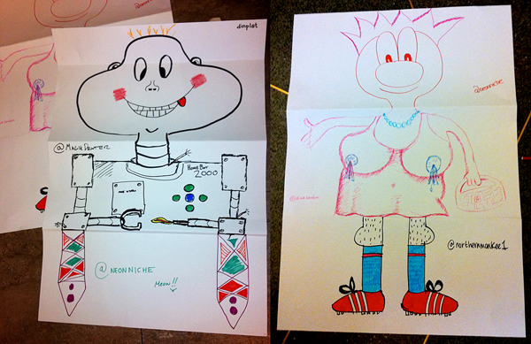 Last week we went to a Creative Design event at the Tate Britain. We didn’t know exactly what it was going to be about. Exhibitions, and digital and manual versions of Dadaism were the main activities of the event, and mostly students and new design graduates. At the beginning, when we (the senior serious designers!) were standing in front of lots of markers and intimidating white, big pieces of paper, our first thought was to stay as observers and not taking part of that ‘collective activity’. But, after a while, we left aside our ‘serious-hats’ and ended up drawing the rest of the evening.