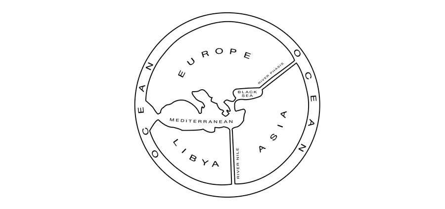2. Early cartographic examples. The first map of the world was a simple illustration where the world is synthesised in a circle, containing three continents: Asia, Europe and Africa. It was created in Turkey (around 550 BCE) by Anaximander. While, the first route map (366 BCE) represents the road system of the Roman Empire. Much later, in 1375 a world atlas was made, which was a complete visual work of cosmography, along with a perpetual calendar and a thematic representation of the known world. The Atlas was commissioned by Charles the Fifth of France and made by Catalonian Abraham Cresques.