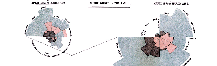 5. The Rose Diagram (1858). Diagram created by the nurse Florence Nightingale to show the poor sanitary conditions of hospitals under which the British army was exposed during the Crimean War (1853-1856). Nightingale’s diagram was part of her report about the soldiers’ causes of mortality in hospitals during the war aimed to change UK’s attitude to hospitals care. Nightingale believed that diagrams could be more effective ways of communication than only written words.