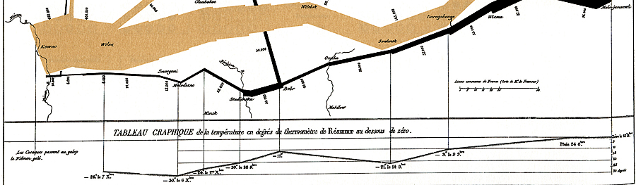 6. Cartí© Figurative (1869). Also worthy of mention is the graphic created by the French engineer Charles Joseph Minard, who added statistical diagrams and bar graphs to cartographic maps. His work displays a great amount of information carefully organised and visually coded.