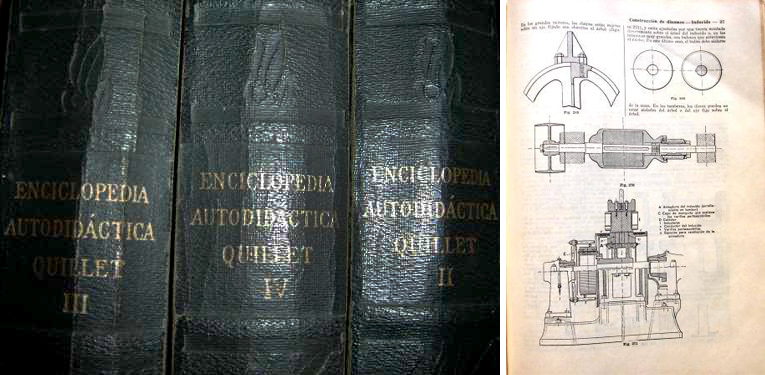 My admiration for complex information design objects started long time ago, when I found the Quillet encyclopaedia (Argentinean editorial Arístides Quillet) that my mom has at home. This collection of 4 volumes was first published in Argentina around 1940s. Each volume covers a specific list of contents and almost everything can be found there. Visual content is a combination of black and white schematic drawings and illustrations, but the volumes have a few full colour pages as well.