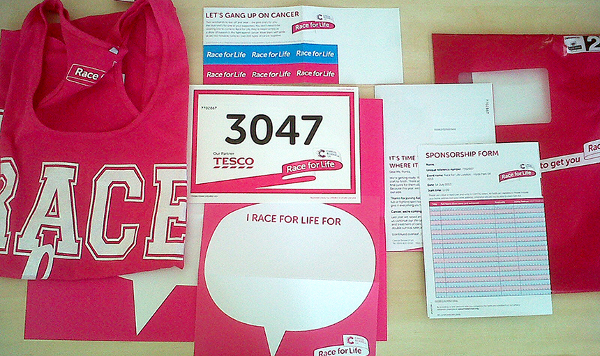 They were all part of the welcome kit for the ‘Race For Life’ marathon of Cancer Research UK, in which I will be taking part this summer. When I opened the package, I was amused with the content and delighted to see how much thinking and planning has been put in to it. This motivated me to learn a bit more about the forthcoming event.