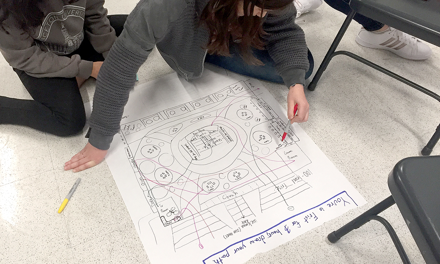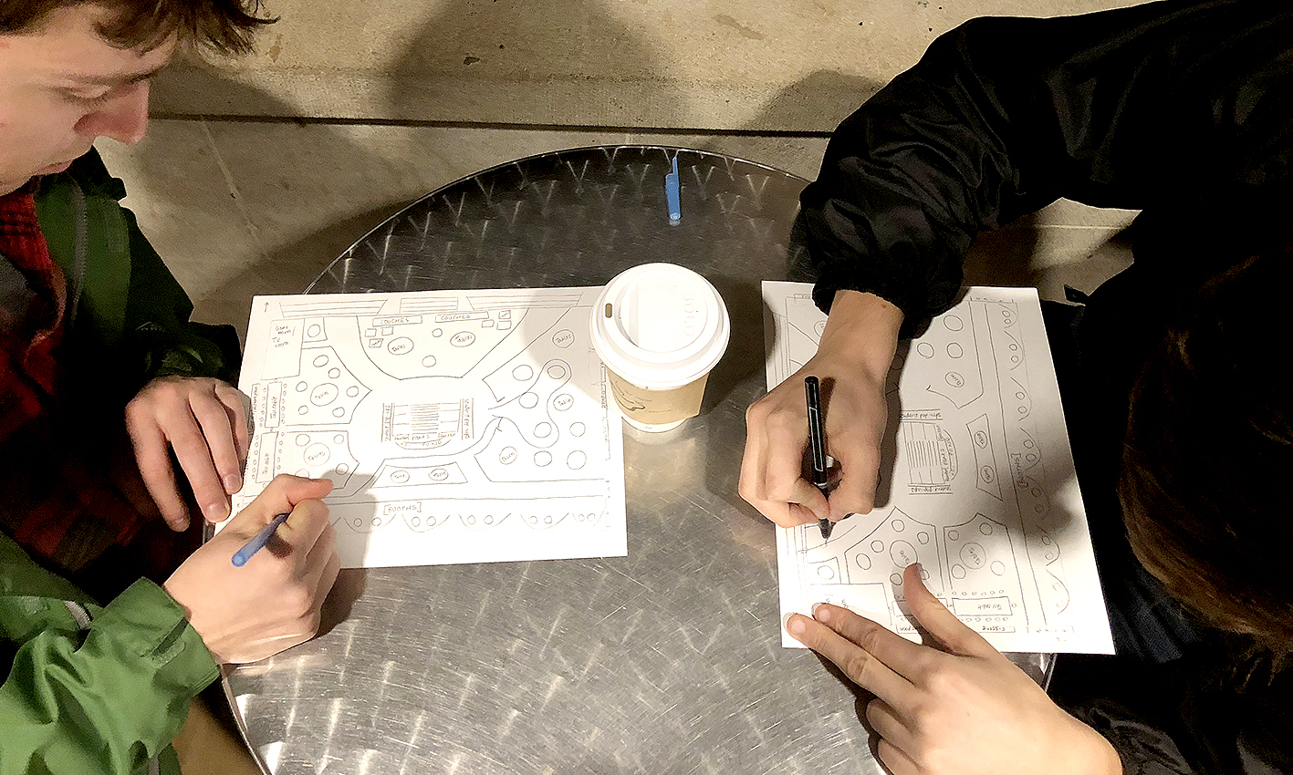 ACTIVITY 1: Mapping patterns. Design a study to better understand people’s behaviors and establish patterns. For example, this can help better understand how people shop in a supermarket, whether there is a connection between aisles and products. You could gather this information by observing and talking with people, or by asking people to map their routes in the given location””supermarket, Student Center, etc. Designate stations where people can stop by to draw and talk about their visit. Make the activity fun and engaging.
