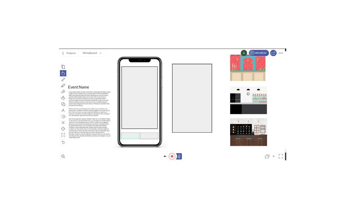 ACTIVITY 2: Designing together. Design individual online sessions for participants to provide design ideas early on in the process. Participants’ input can help identify what design features are more important, and better understand behaviors and common uses. Use digital whiteboard tools to give participants a space to visually share their ideas. Design specific activities for each participant to complete while you observe and record their thought process. Pair the activities with think aloud techniques to gain an even deeper understanding of their decision making. Insights can help inform the design of interfaces, new tool features, etc.
