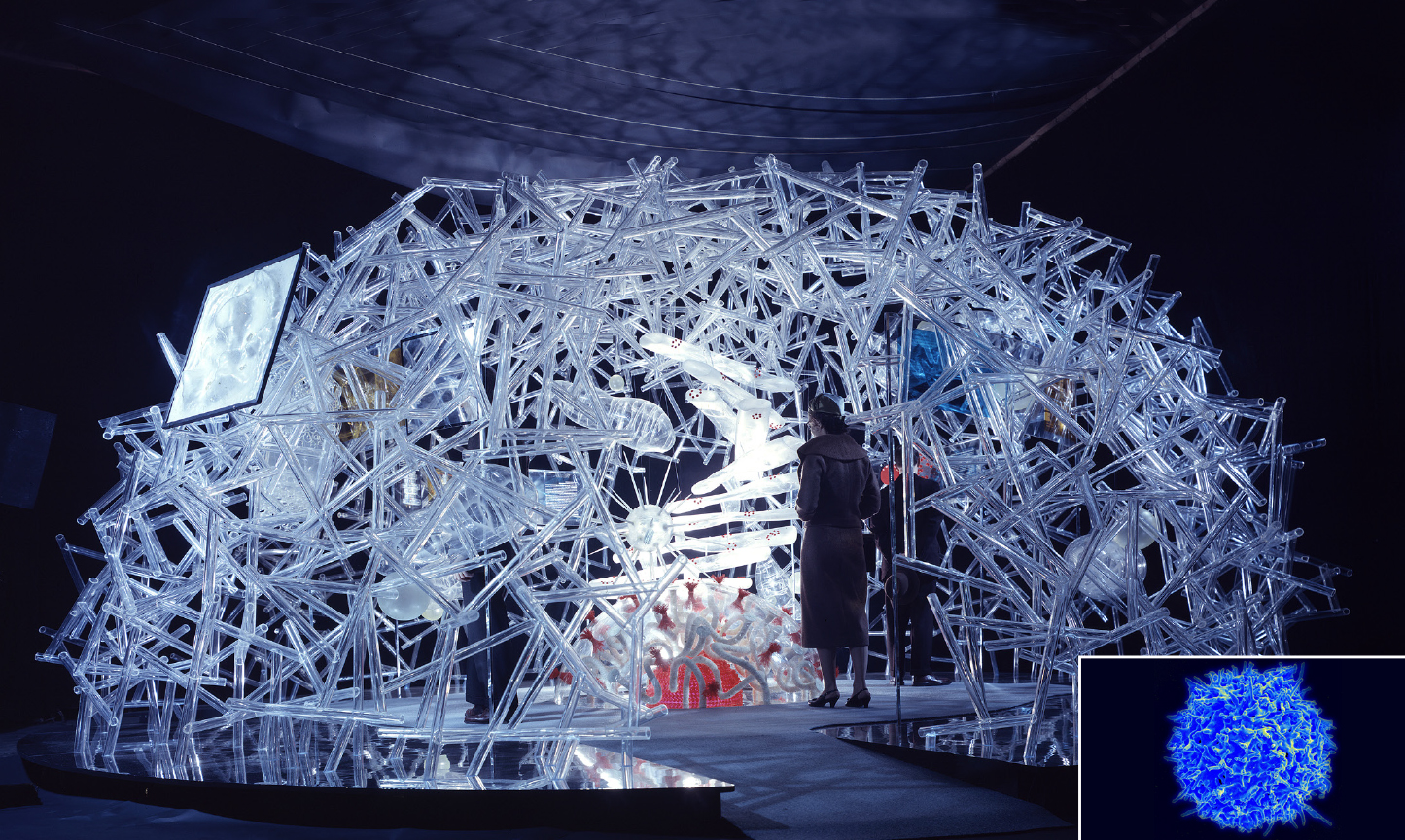 Some of Burtin’s strategies included the creation of large-scale, walk-through 3D models, an ingenious solution that many information designers, despite having more resources and technology available today, rarely think of doing to explain complexity. By dramatically increasing scale and building interactive models, Burtin’s interventions helped people experience first-hand what something is and see how something works, and this way understand what it means.